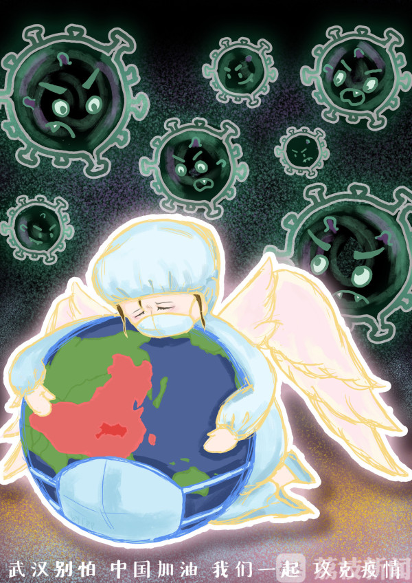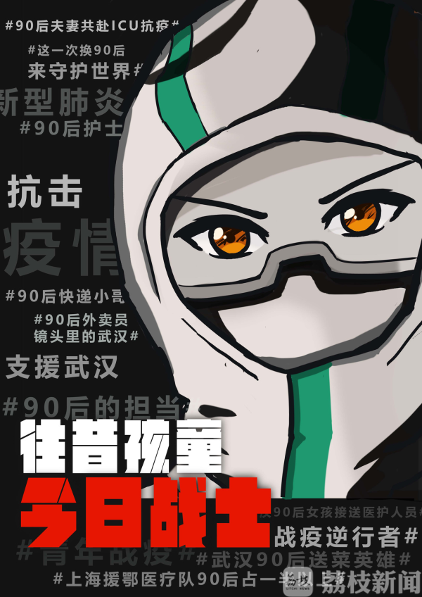 1997年出生的大四学生翁思佳看到许多年龄相当的护士奔赴前线,很有感触,创作了作品《今日90后》,翁思佳告诉记者:“2003年非典时我们还很小,完全是被保护的孩子,十七年过去了,我们也可以去保护别人,希望通过这个作品表达年轻人对社会、对人民的责任感,也激励自己去做更多贡献。”