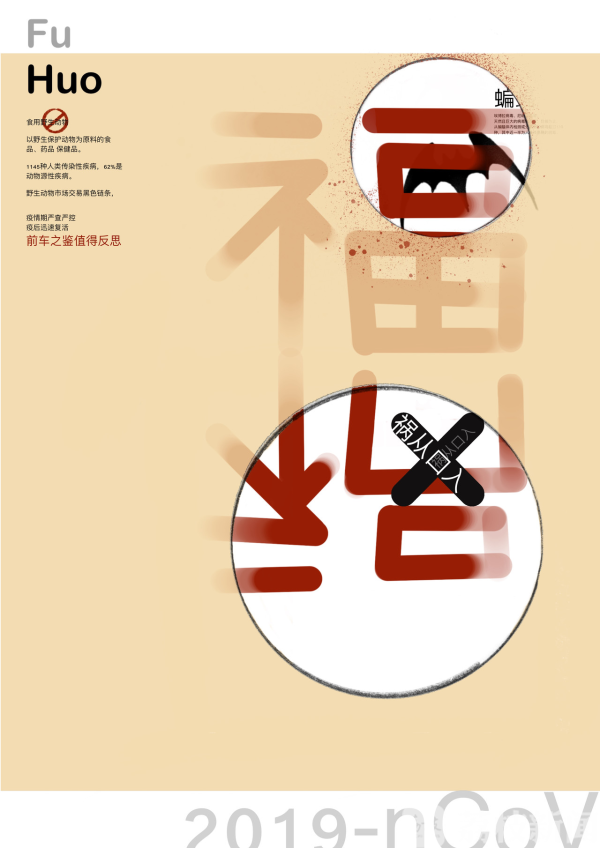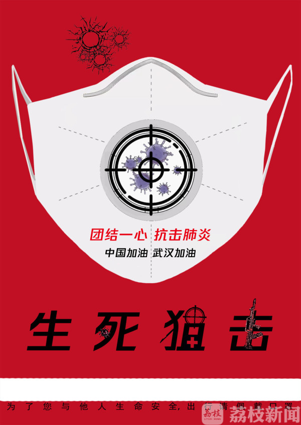 机械学院2017级工业设计专业的孙梦同学共设计了《战疫》《生死狙击》《全民抗疫》《自食》四幅作品,孙梦表示,作为学生,可能为此次的战疫能做的事情不是很多,很敬佩那些具有自我奉献精神的医生,组织检查的警察,以及所有捐献自己一份力量的人,想尽所能,将温暖与助力通过作品的形式展现出来,传递下去,齐心协力祝愿祖国共渡难关。孙梦说,指导老师刘昊尤其对《全民抗疫》和《自食》这两幅作品提了很多意见,比如三维和二维的结合,什么颜色更加突出主题等,最终才有呈现在大家眼前的作品,非常感谢老师的指导。