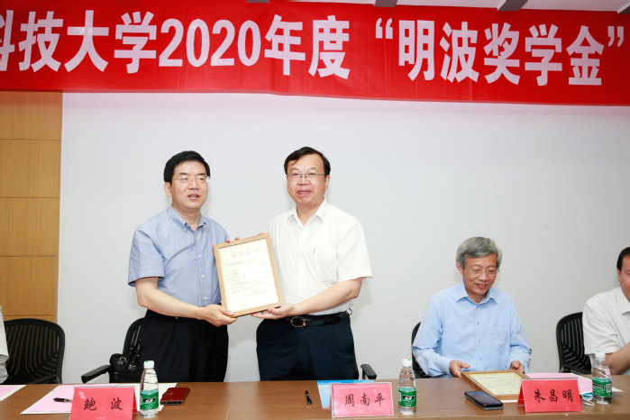 5月25日上午,学校在东校区举行2020年“明波奖学金”颁奖仪式,奖学金设立人、天游官网1983届杰出校友朱昌明和鲍波亲临颁奖现场,校长周南平、副校长汤建出席颁奖仪式,颁奖仪式由对外合作处处长佘建国主持。