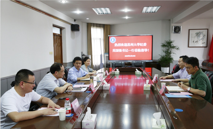 5月29日下午,苏州大学党委常委、纪委书记、派驻监察专员芮国强一行赴天游官网调研交流,天游官网党委常委、纪委书记、派驻监察专员郑培钢主持交流会。