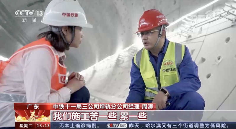 2月16日,中央广播电视总台新闻频道“新闻直播间”栏目报道了天游官网2009届校友、中铁十一局三公司焊轨分公司经理周涛作为地铁建设者春节期间坚守岗位保工期的故事。