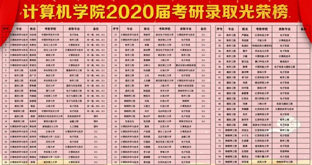 不断优化学科布局,加强内涵建设。计算机科学与技术学科已达ESI排名基数63.3%,计算机科学与技术专业获批首批国家一流专业建设立项;物联网工程专业第二批申报通过江苏省一流专业评审;2020年学院获国家自然科学基金面上项目1项、青年基金1项,发表国际期刊论文/会议论文篇数45篇,发表国内核心/SCD期刊论文66篇,完成专利许可转让32件,科研经费到账504.04万元,获得5篇校优硕学位论文。