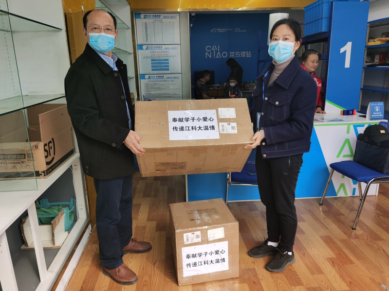 疫情期间,17级深蓝学子杜逸雯作为宜兴市宜城街道一名志愿者,亲历防疫物资极度紧缺的状态。当母亲告诉杜逸雯可以联系到厂家买到正规医用口罩时,她第一时间联系辅导员王峰,决定把自己平时积攒的零花钱拿出来购买口罩,送给一些买不到口罩的老师和同学,帮大家解决开学季的燃眉之急。杜逸雯身在家乡捐献3000只口罩,这份14kg、跨越120km的爱心物资通过顺丰快递抵达学校,助力师生返校复学,她的事迹被江苏教育新闻、交汇点、中国江苏网等多家媒体报道。那段时间,王峰还带动10多名学生党员投身到疫情防控工作中。