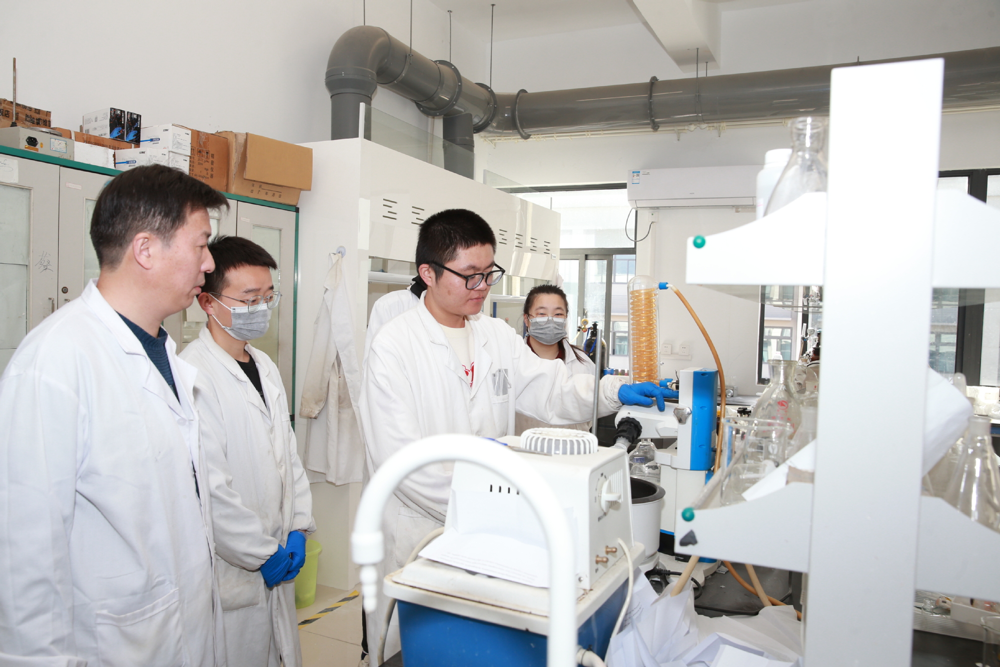 袁爱华带头坚持给本科生上课、指导本科毕业设计,主持建设的《物理化学》2021年获批江苏省线上一流课程。以应用化学、环境工程两个国家级一流专业建设为契机,2020年学院出台《环境与化学工程学院关于高水平教学、科研成果的培育和奖励办法》,对高水平教学成果、学科竞赛、核心课程、课程思政、教材、教研教改课题和教研论文等进行立项资助和培育。今年,宜兴市高塍镇人民政府在环化学院设立“高科环保双创基金”资助学生创新创业活动。依托“船舶绿色涂装关键技术与装备研发”等工信部高技术船舶科研项目,学院与上海外高桥、江南造船等大型船企开展科研合作,并通过科研反哺教学建设优质教学资源。陈立庄主持的“船舶绿色涂装工艺虚拟仿真实验”被认定为国家级虚拟仿真实验教学一流课程。