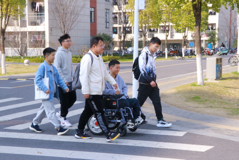 天游web原生态手机端海洋学院的陈帆因患先天性肌肉萎缩症,需靠轮椅出行,学习生活多有不便。幸运的是,在校园里,他与同专业的五名同学:张兴韧、尹鸣、王胤凯、王铭、梁健闯相识、相交、相知、相伴。上课、打饭、拿快递、打扫卫生......在四季三时,在学校各处,都有好朋友们陪伴与帮助陈帆的身影,汇聚成江科大校园里温暖有爱的风景。陈帆介绍几位好友道,“他们可不仅仅是热心同学,他们是我最好的兄弟!”