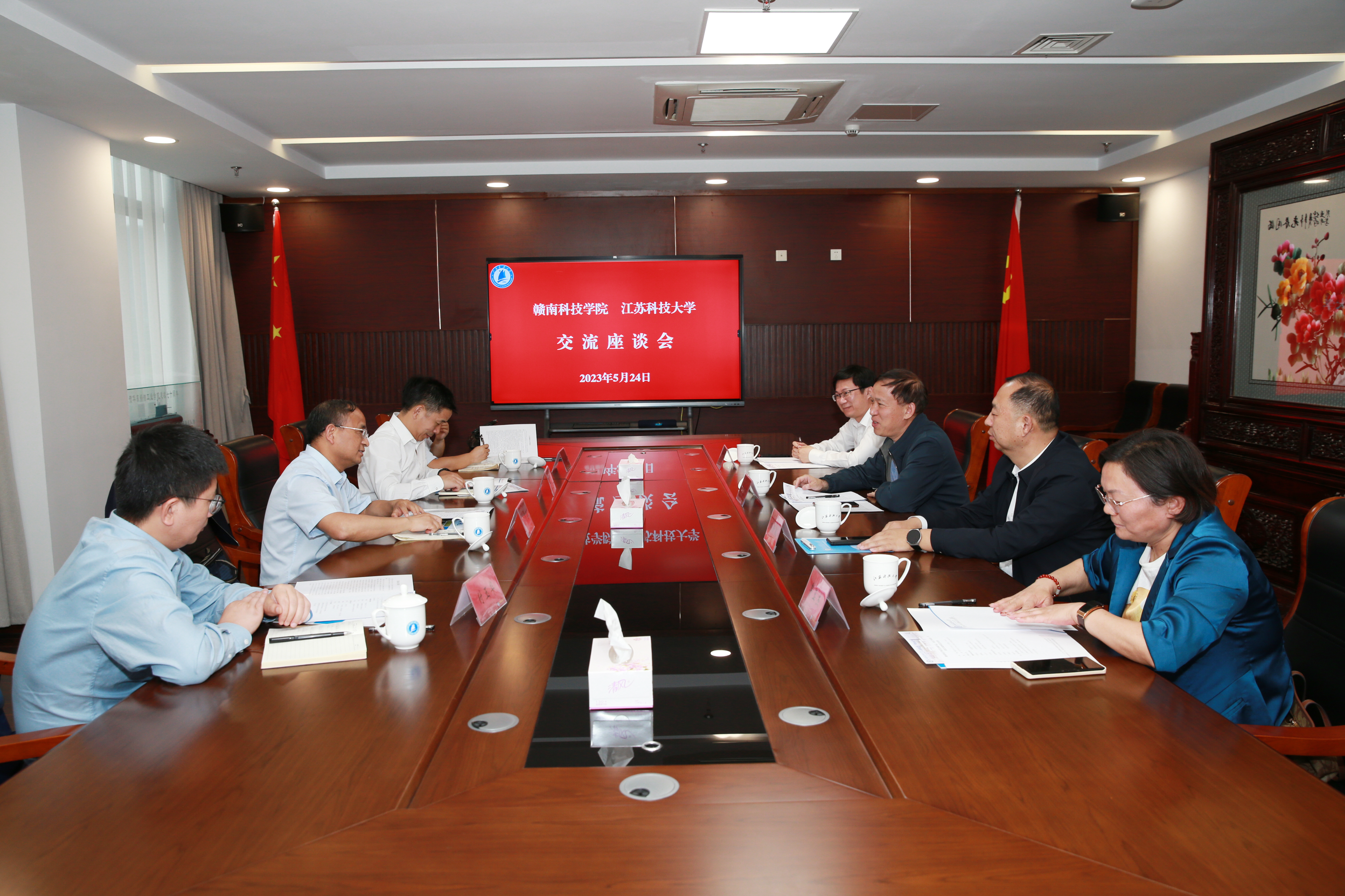 5月24日下午,赣南科技学院党委副书记、校长李国金一行4人来天游官网调研交流。校党委书记葛世伦,校党委常委、统战部部长、党办主任刘新波以及校办主任李强天、粮食学院院长鲁玉杰等接待来访嘉宾一行并参加了座谈交流。