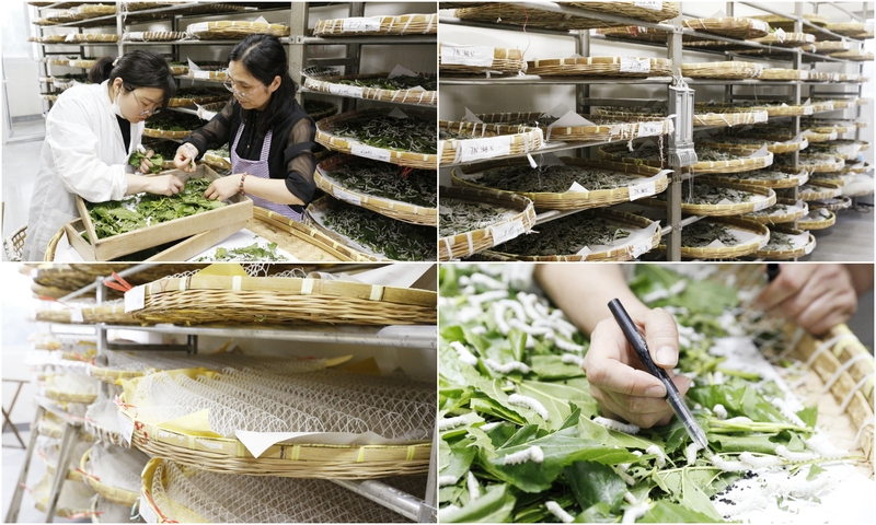 家蚕以卵越冬,越年种有效期仅有一年,因此家蚕基因资源必须采用活体饲养保存。每年春季,科学家都需要大规模地将蚕卵孵化,饲养、观察、记录它们的生长情况,完成品种的继代保存。在这期间,蚕研所工作人员要从早到晚为蚕宝宝忙碌着。有的品种蚕较弱,照料方式需随品系、生长阶段等变化,要日日巡查、不能中断。