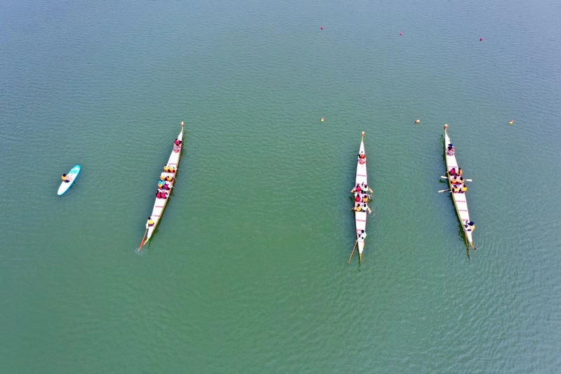 “荡舟在湖上,蓝天白云,偶有天鹅掠过,非常地享受。”来自教职工龙舟队的队员万纤表示,之前从没想过还能够在学校海韵湖里划龙舟,这个端午过得不一般。