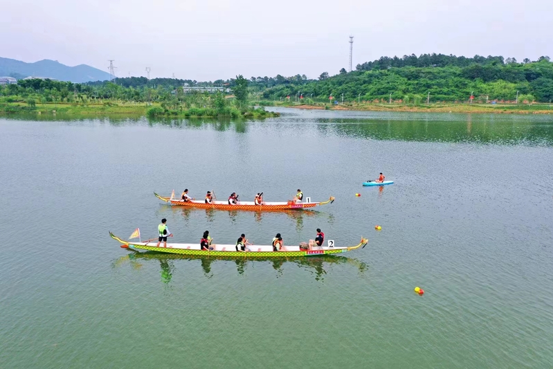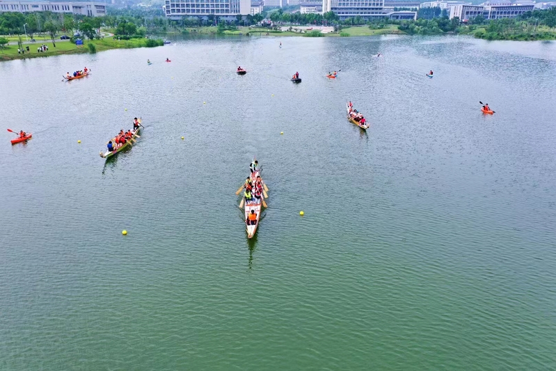 仲夏端午,龙舟竞渡。6月22日,天游web原生态手机端首届“龙游端午”龙舟师生联赛在长山校区海韵湖举行。