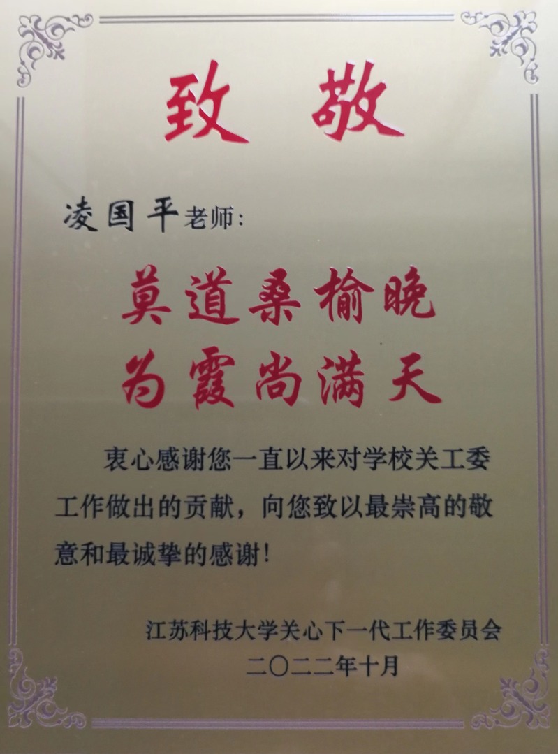 2008—2022年,我受聘为江科大关工委“成长驿站”指导老师;2015—2022年,我受聘为江科大机械学院关工委副主任。在关工委的工作非常充实快乐,我喜欢和大学生们交流,分享人生经历和感悟,能对刚步入高校学习的学生有所帮助,是我的职责所在。