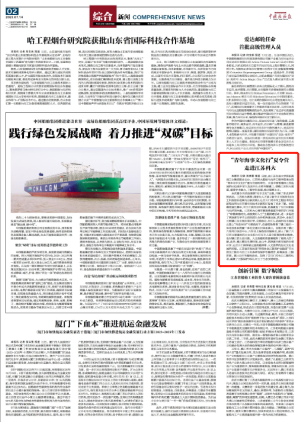 中国船舶报2023年7月14日2版https://zgcbb.cnepaper.com/zgcbb/h5/html5/2023-07/14/node_1.htm?v=1&curr=1