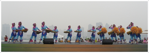 2010年,上海世博会为各省市设置了展演活动周。在江苏活动周,陈欢带领学校大艺团同学们在面向世界传播的舞台上,唱响了淳朴悠扬的南乡田歌。漠漠水田、农忙插秧、白鹭惊起……一幅优美的镇江丹徒乡村画卷随着歌声在听者眼前徐徐展开,节目演出反响热烈。从田间到舞台,从千年前的先民到新时代的江科大学子,南乡田歌的传唱流播给了陈欢启发,“艺术没有界限,理工科学生也可以很好地传承传统艺术文化。”自此,她致力用艺术架起古今互通、学科交融的桥梁,引导更多同学参与进来。