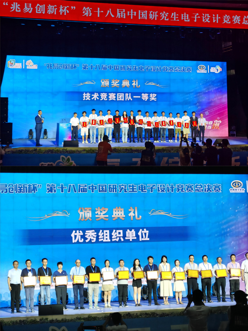 8月13日,由教育部学位管理与研究生教育司指导,中国电子学会、中国学位与研究生教育学会、中国科协青少年科技中心共同主办的“兆易创新杯”第十八届中国研究生电子设计竞赛全国总决赛在广东东莞圆满闭幕。本届竞赛中,天游官网研究生共斩获9项全国性奖项,其中一等奖1项、二等奖1项、三等奖7项,1名教师获评全国总决赛“优秀指导教师”,学校获评全国总决赛“优秀组织单位”。