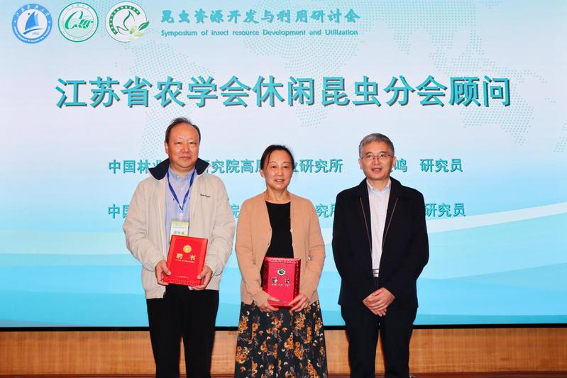 会上,李木旺研究员为陈立忠研究员级高级工程师、都兴范研究员、黄先智研究员、王俊教授、邹宇晓研究员颁发了中国蚕学会资源开发专业委员会负责人聘书,孙洪武研究员为陈晓鸣研究员、冯颖研究员颁发了江苏省农学会休闲昆虫分会顾问聘书。