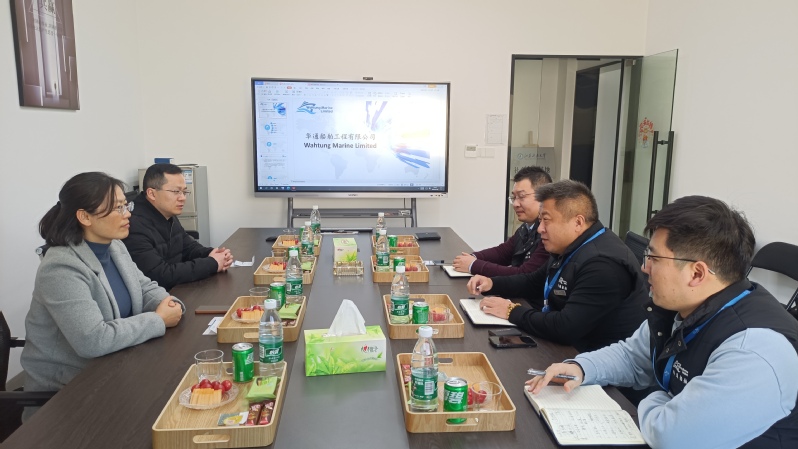华通船舶工程有限公司董事长、校友金加俊,研发部总经理冯春光热情接待赵莉一行,并表示将继续拓展海外市场人员,希望外国语学院能够推荐优秀毕业生到企业工作。