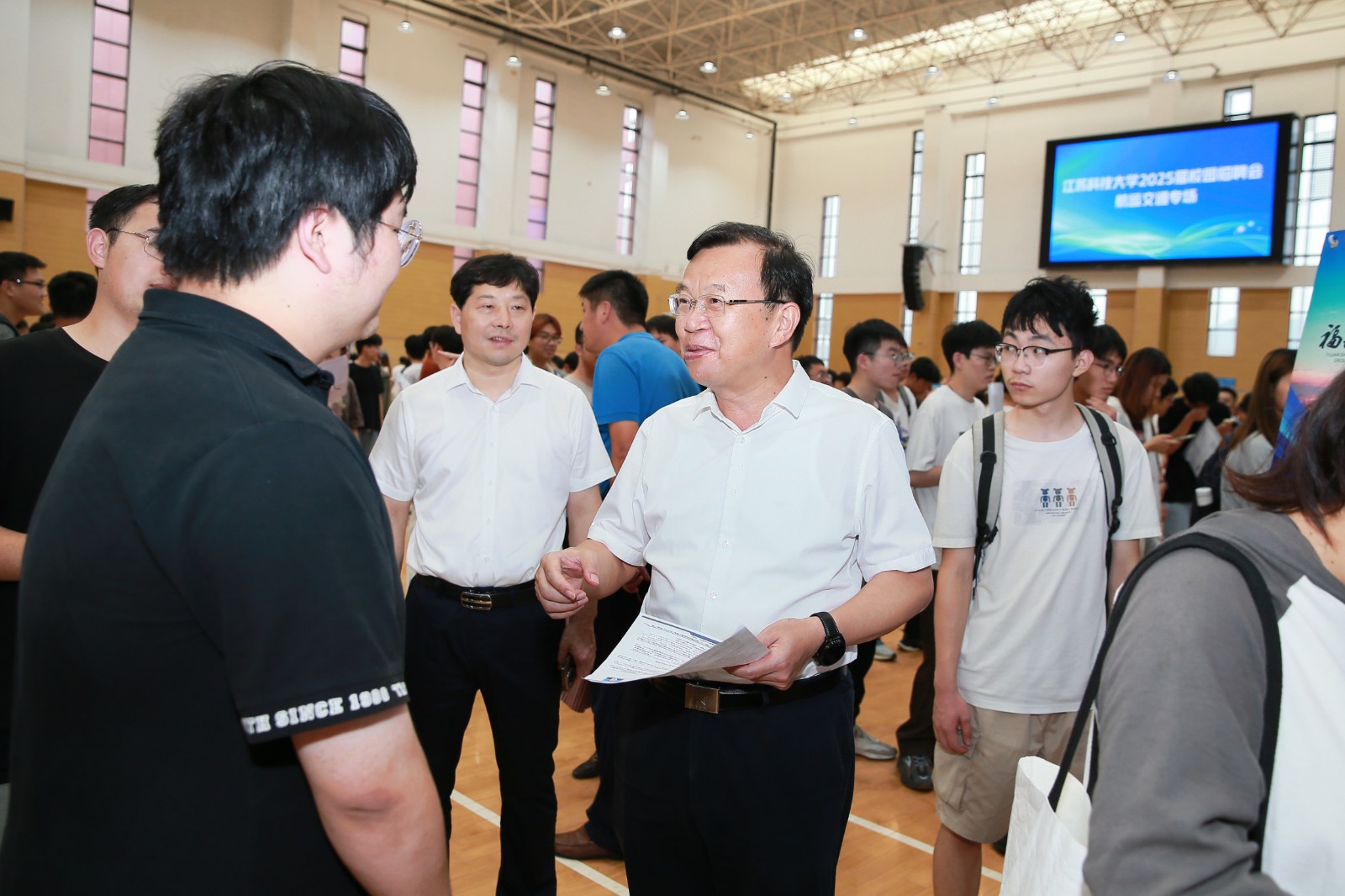 校党委书记周南平,党委常委、副校长胡爱祥亲临招聘会现场,指导相关工作。校领导深入了解各用人单位的类型、岗位需求以及招聘情况,感谢用人单位长期以来对学校就业工作和人才培养的支持,并认真听取了用人单位对天游官网毕业生就业情况及学校专业发展、人才需求等方面的意见和建议。周书记还与毕业生亲切交流,询问他们的就业意向和求职进展,同时提供指导和答疑。