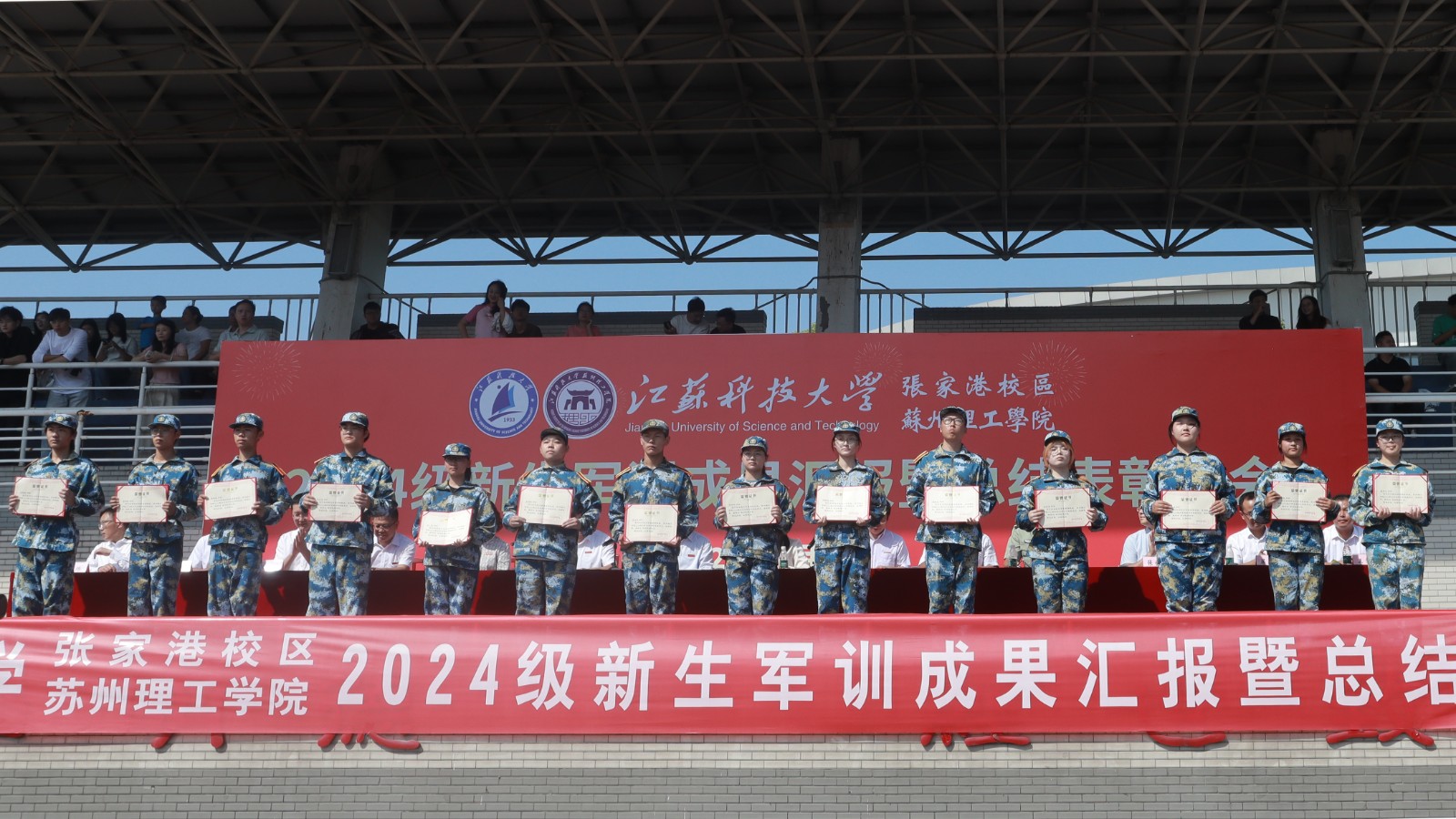 9月28日,张家港校区、苏州理工学院举行2024级新生军训表彰总结大会。校区、苏理工领导王志东、徐琳、黎文航、吴瑕暇,各部门负责人、各学院党总支书记、副书记出席。新生辅导员、班导师和2024级全体新生参加活动。会议由校区管委会副主任、苏理工副院长孙杰主持。