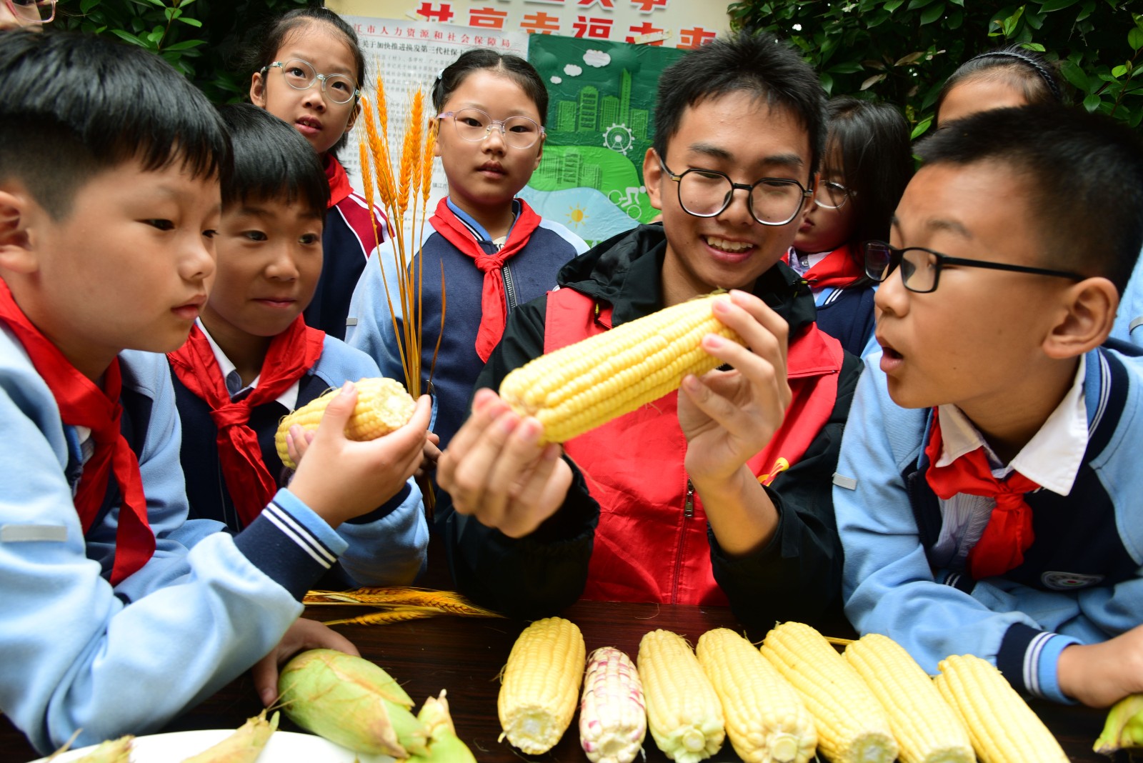 活动开始,志愿者们带来了一些玉米、红豆、大米、小米、花生、芝麻等粮食,孩子们兴奋地伸出小手,轻轻触摸着这些粮食,感受它们的形状和质地,志愿者们借此教导孩子们辨认这些粮食。随后,志愿者们带领小朋友们一起朗诵了《悯农》这首诗,并讲述了其中的故事,引导小朋友们在今后要节约粮食,不随便浪费,让爱惜粮食的种子在孩子们幼小的心灵中萌芽。