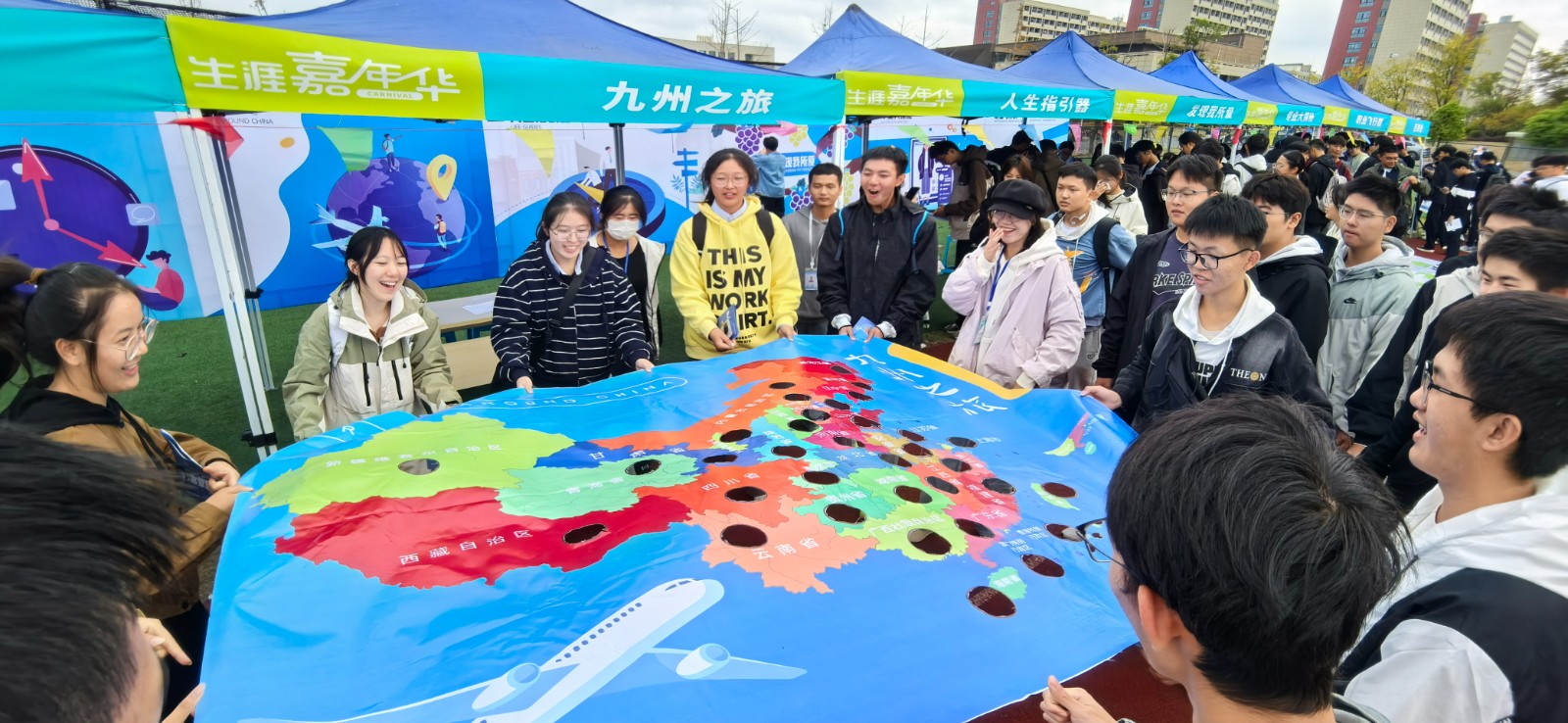 “生涯嘉年华”是学校立足新时期高校学生成长发展新特点,创新开展学生生涯规划教育、将就业指导工作前移的新形式。本次活动将体验探索活动与职业生涯探索相结合,设置了“动力激发”“职业探索”“自我发现”等十个趣味游戏,覆盖职业兴趣、技能、价值观、职业探索等多个板块。每个游戏区域设置打卡盖章,融入科学测试、闯关奖励等活动元素,打造寓教于乐的自助探索式“翻转课堂”。