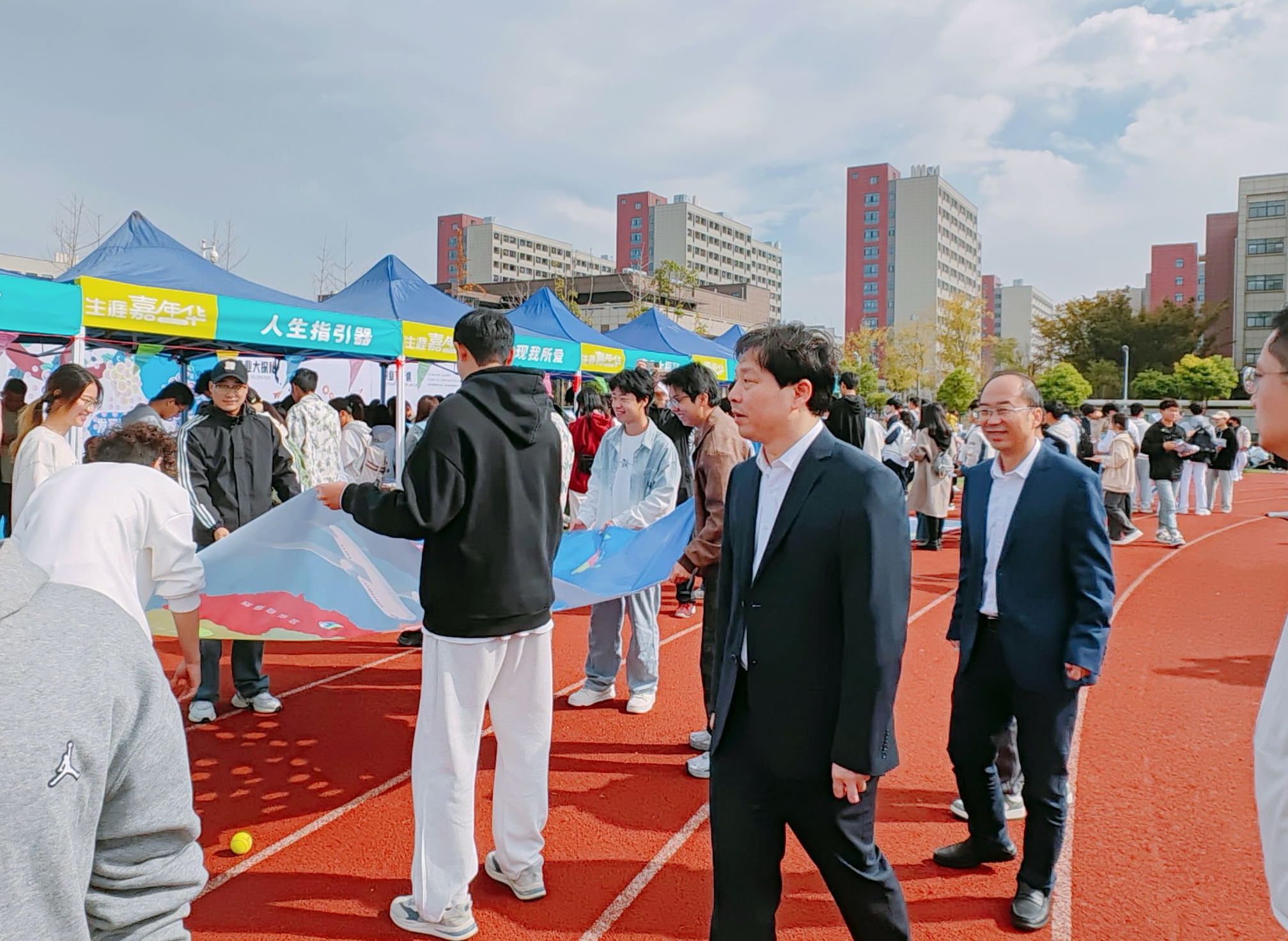 为激发学生尽早树立生涯规划意识,明确个人成长方向,构建长远职业发展目标,10月25日至26日,天游官网举办“梦想启航 职路导航”首届生涯嘉年华活动,本次活动是主要面向全体新生,校党委常委、副校长胡爱祥出席活动并与师生亲切交谈参与互动体验。