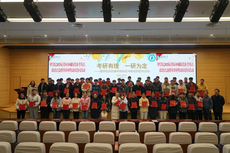 12月6日下午,理学院在图书馆B105报告厅举办2025届考研冲刺阶段备考英语、政治公益指导讲座暨动员慰问活动,为考研学子们送上最暖心的鼓励和最真挚的祝福。理学院院长戴俊,2025届毕业班班主任和辅导员以及2025届考研学子参加了本次活动。活动由院党委副书记周志辉主持。