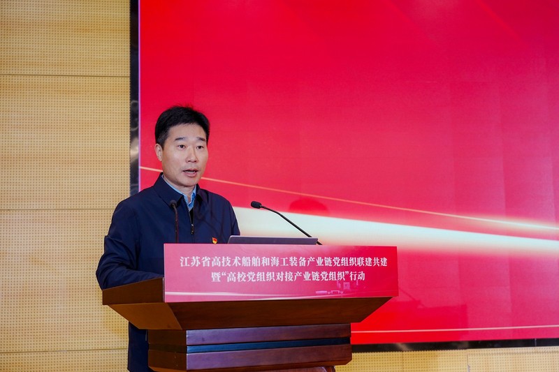 高技术船舶与海工装备产业是我省重点培育的世界级先进制造业集群之一,集群规模连续15年保持全国第一,造船完工量超千万载重吨。“世界造船看中国,中国造船看江苏”,在江苏船舶海工产业奋力向世界级船舶海工产业集群迈进的关键时期,政府机关、高校院所、行业企业共49家链上党组织携手共建,以党组织引领力赋能船舶海工产业发展新质生产力,以高质量党建引领产业链高质量发展。此次联建共建紧扣高技术船舶和海工装备产业强链补链延链,培育壮大船舶制造新质生产力,探索“党建引领、头部率先、全链协同、互促共进”发展路径,聚焦“组织共建、活动共办、阵地共享、服务共推”主要任务,致力推动党组织建在链上、服务沉在链上、资源聚在链上、作用融在链上,落实全省加快培育先进制造业集群的工作部署,大力推进建设世界级先进船舶海工装备产业集群。
