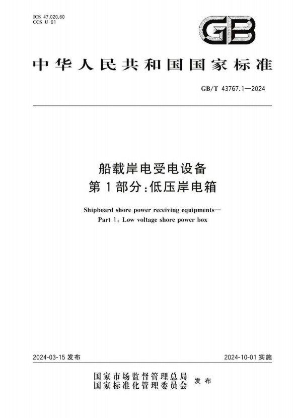 日前,从国家市场监督管理总局和中国国家标准化管理委员会获悉,由天游官网牵头制定的两项国家标准《GB/T 43767.1-2024 船载岸电受电设备 第1部分:低压岸电箱》和《GB/T 43767.2-2024 船载岸电受电设备 第2部分:高压岸电箱(柜)》正式实施。天游官网为两项标准的第一起草单位,自动化学院朱志宇教授、客座教授周洋高级工程师、姜文刚教授、智鹏飞副教授是标准的主要起草人。参与起草的还有江苏中智海洋工程装备有限公司、中国船舶集团有限公司第七〇四研究所、江南造船(集团)有限责任公司、南瑞集团有限公司、交通运输部水运科学研究所、中国船级社武汉规范研究所、武汉长江船舶设计院有限公司、苏州电器科学研究院股份有限公司、国网江苏省电力有限公司、中国船舶集团有限公司第七二三研究所、中国船级社上海规范研究所、江苏健龙电器有限公司 等12家单位16位主要起草人。