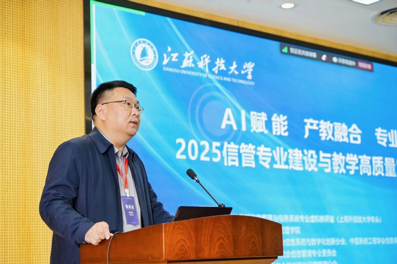 教育部信息管理与信息系统专业虚拟教研室负责人马宝君教授致辞。他指出,虚拟教研室作为信息化时代的新型基层教学组织,是推动教育教学改革的重要平台。当前需进一步提升教师将现代信息技术深度融合于教学的能力,推动跨专业、跨学校、跨地域的教研协作,并倡议共建共享优质教育教学资源。