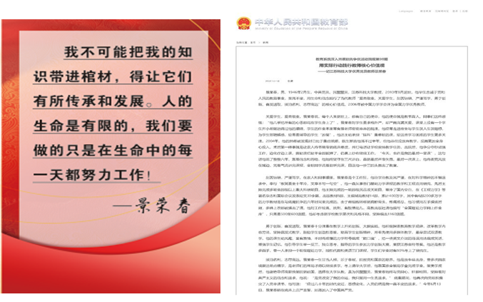2011年6月,景荣春教授被教育部选树为全国高校创先争优先进典型