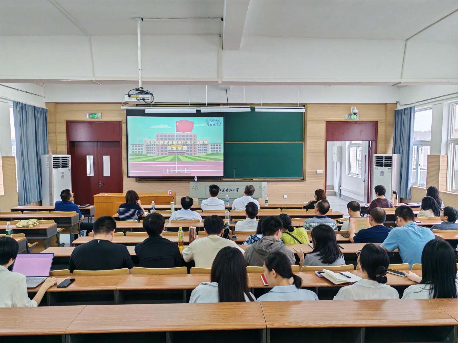 杨美成在开场致辞中强调,师德师风是教师立身之本、育人之基,两学院联合开展此次活动,旨在通过“专家引领+警示教育”的形式,帮助教职工进一步明晰教育教学改革方向,筑牢师德底线,切实将教育家精神融入教育教学实践。