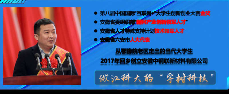 【人物简介】吕林,安徽省委组织部新兴产业创新领军人才,安徽省高层次人才;从鄂豫皖老区走出的当代大学生,获第八届中国国际”互联网+”大学生创新创业大赛金奖,回乡创立安徽中钢联新材料有限公司,天游web原生态手机端2014届材料学院校友。