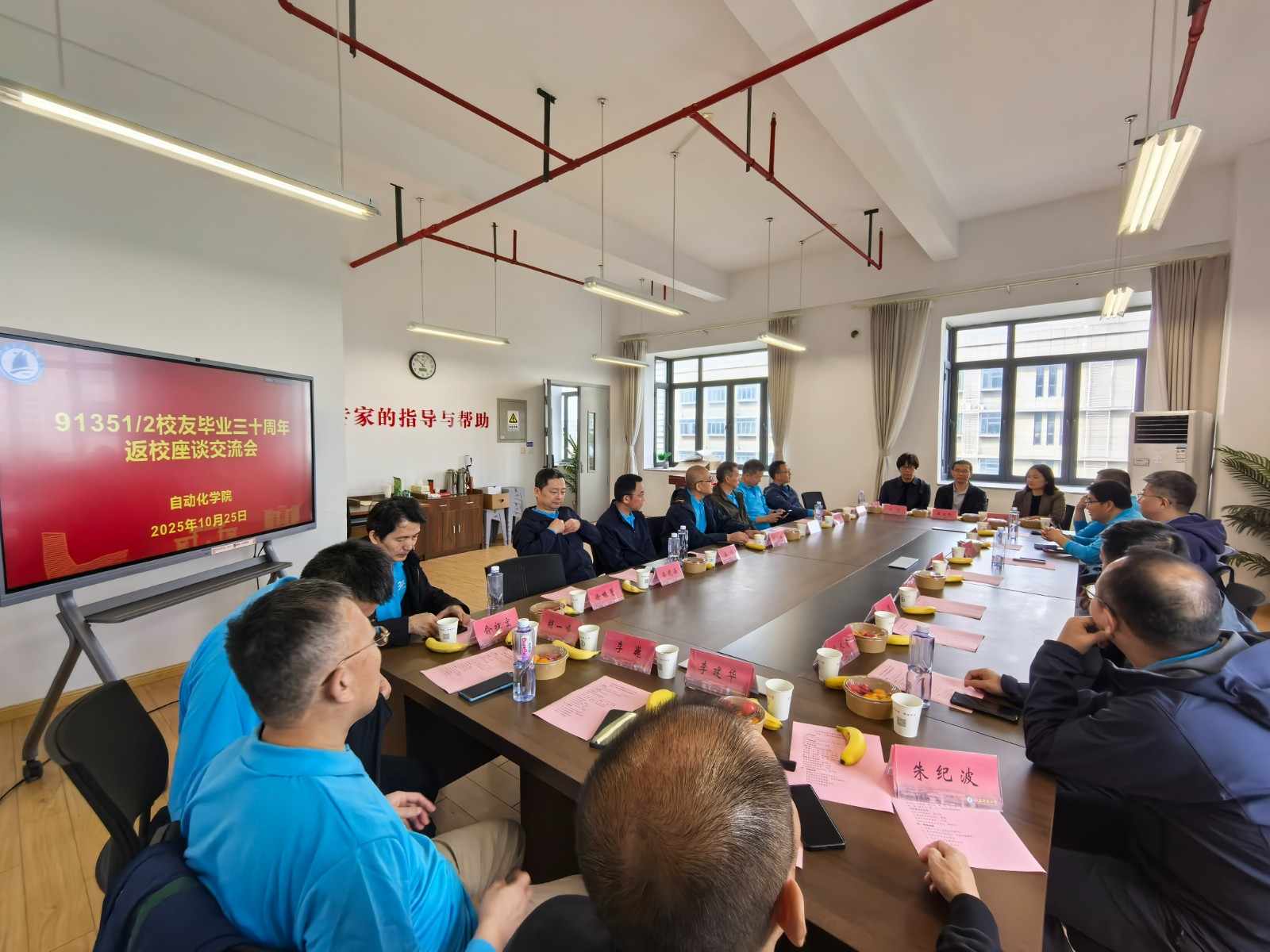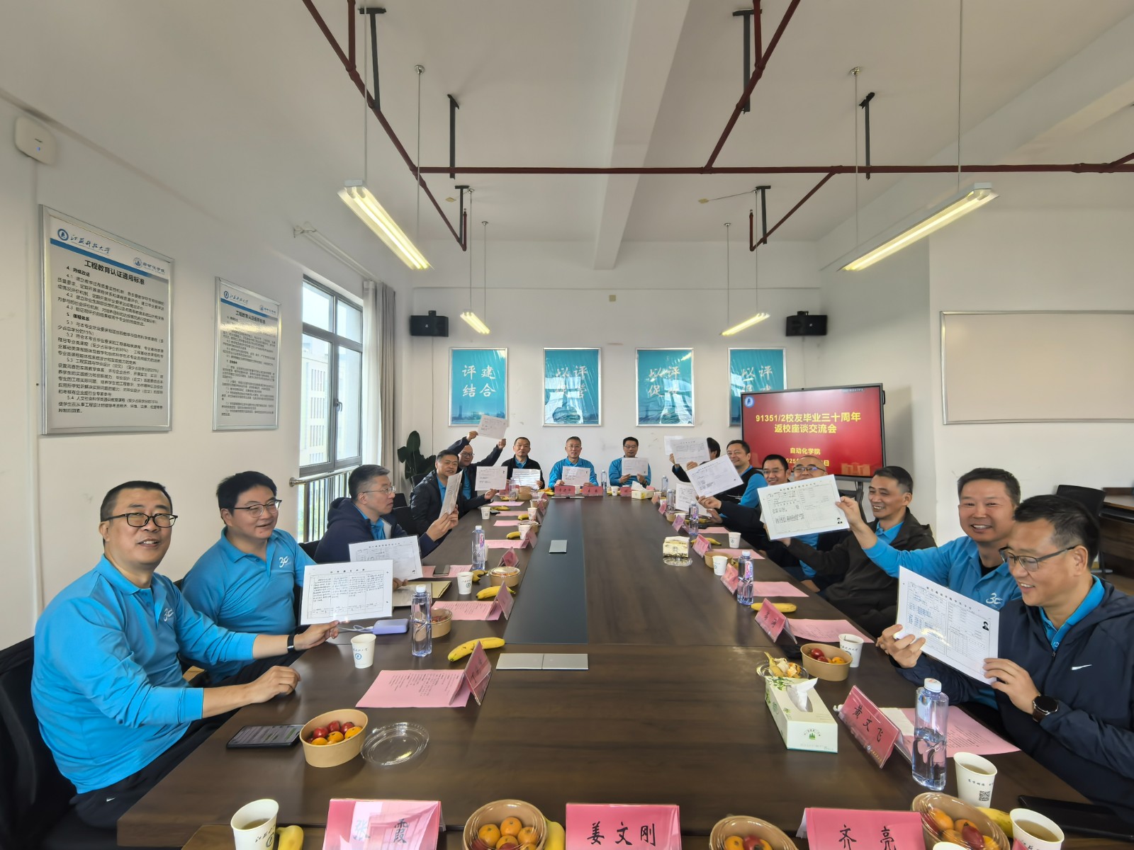 交流互动环节,氛围愈发热烈。校友们结合自身职业经历,分享了各自在行业领域的发展动态与心得体会,同时深情回望在校期间的青春往事,教室听课的专注、操场奔跑的活力、宿舍畅谈的欢愉等场景历历在目,真挚情谊溢于言表。现场,校友们还代表当年班级,向自动化学院捐赠了精心准备的纪念物品,以此寄托对母校和学院的感恩之情与美好祝福,学院也为校友们精心制作了当年的学籍卡片,为这场跨越三十年的重逢增添了更多温情印记。