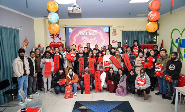 不远处,包饺子现场更是热气腾腾。校领导挽起袖子和留学生们围坐一桌,擀皮、填馅、捏褶,动作从生涩到娴熟。一盘盘水饺渐次摆满桌案,笑语伴着蒸汽升腾,大家共话新年愿景,其乐融融的场景让异国学子切实感受到“家”的温暖。
